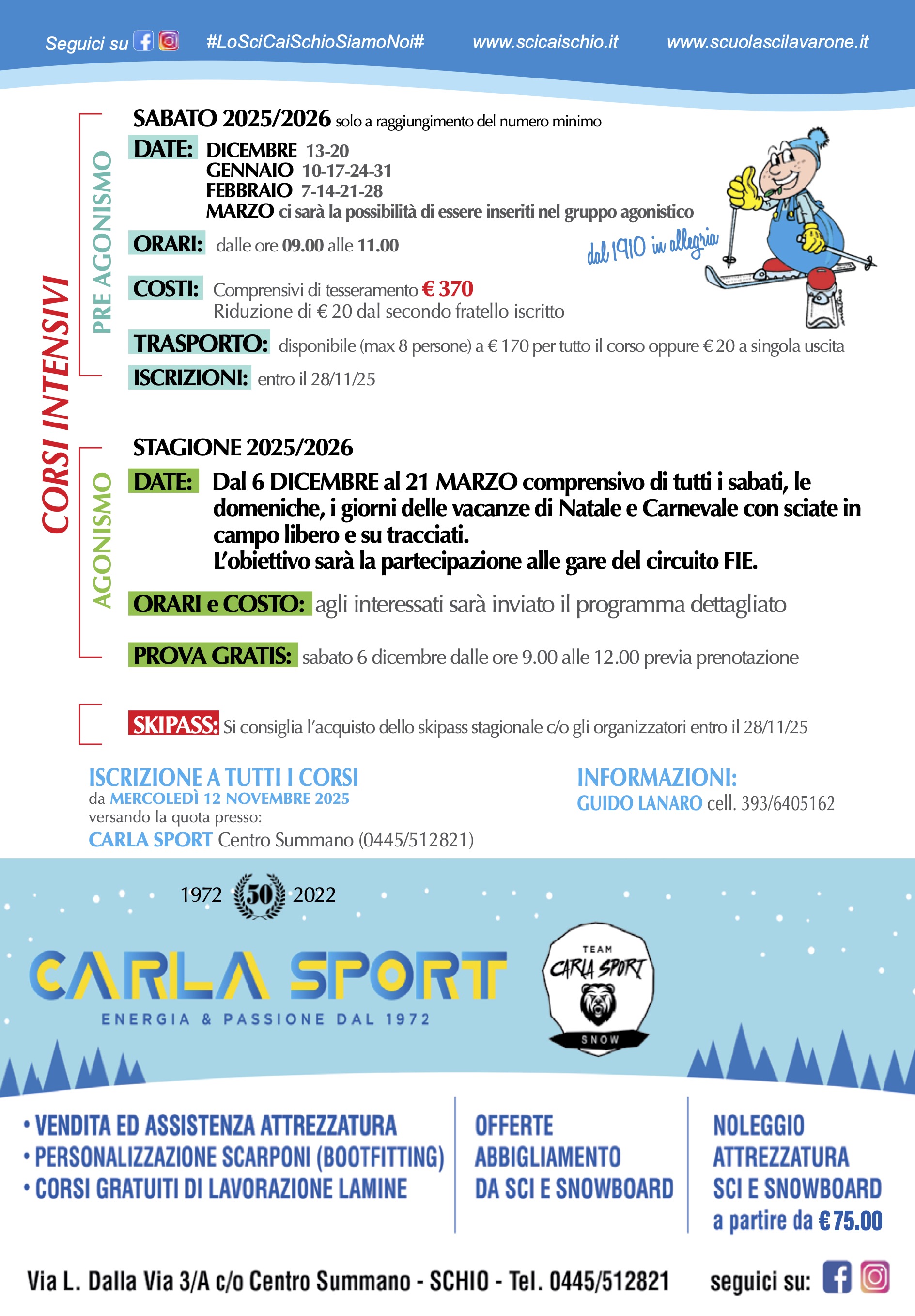 ✍️Presso l'iconico negozio @carlasport troverete tutto il necessario per iscriversi ai corsi e prenotare gli skipass a prezzo scontato!